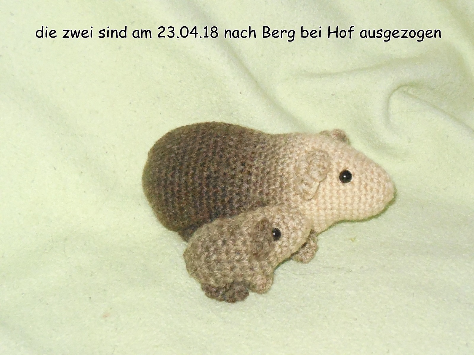 Ich habe früher schon in der Schule häkeln und auch stricken gelernt, dann habe ich das sehr lange nicht mehr gemacht. Seit Januar 2017 häkel ich wieder und habe mitterweile schon einige Meerschweinchen gehäkelt, aber auch viele andere Sachen. Mittlerweile ist häkeln neben meinen echten Meerschweinchen mein zweites Hobby geworden ![]()